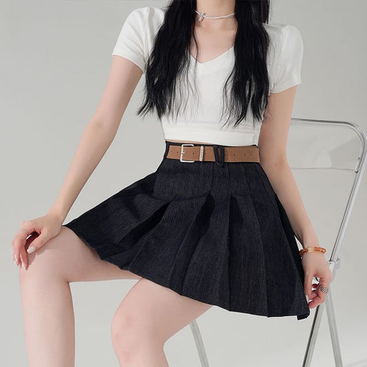 A-Line Waist Lace Mini Drawstring Pleated Skirt Trim