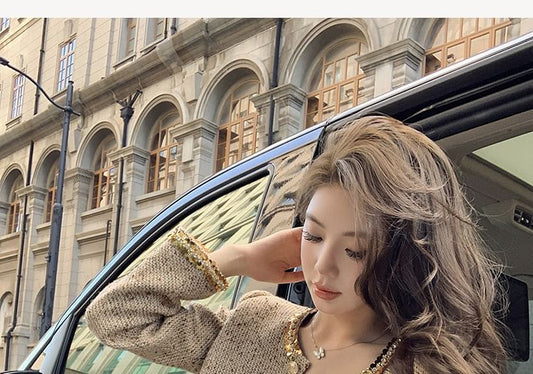 Set: Button-Up Tweed Jacket + High Waist Maxi Skirt
