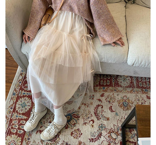 High Rise Plain Frill Trim Midi A-Line Skirt