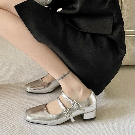 Square Toe Rhinestone Buckle Mary Jane Pumps