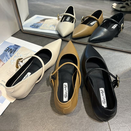 Pointed Toe Rhinestone Buckle Mary Jane Shoes