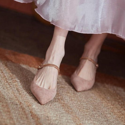 Cap Toe Double-Strap Chunky Heel Mary Jane Pumps
