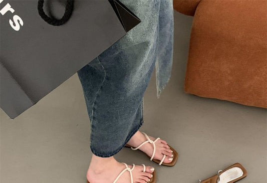 Rhinestone Toe Loop Chunky Heel Slide Sandals