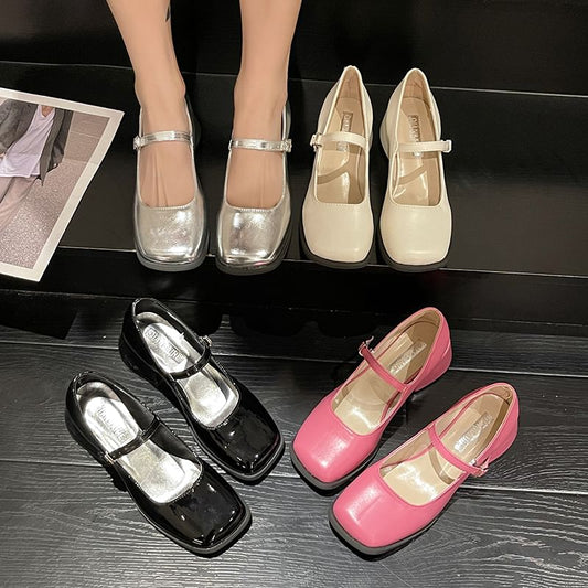 Chunky Heel Plain Bow Accent Faux Leather Mary Jane Pumps