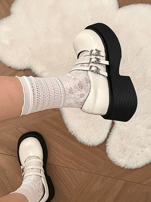 Ruffle Bow Platform Chunky Heel Mary Jane Pumps