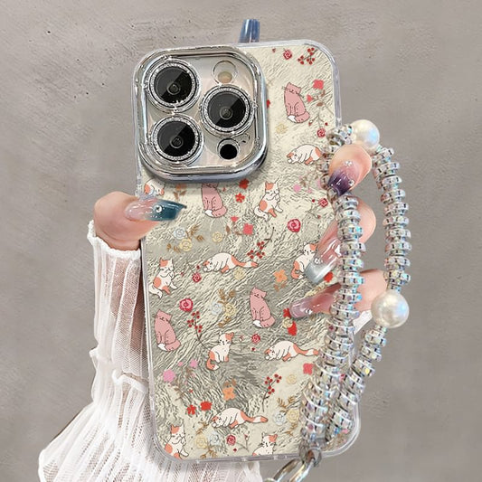 Animal Print Phone Case / Faux Pearl Phone Strap / Set