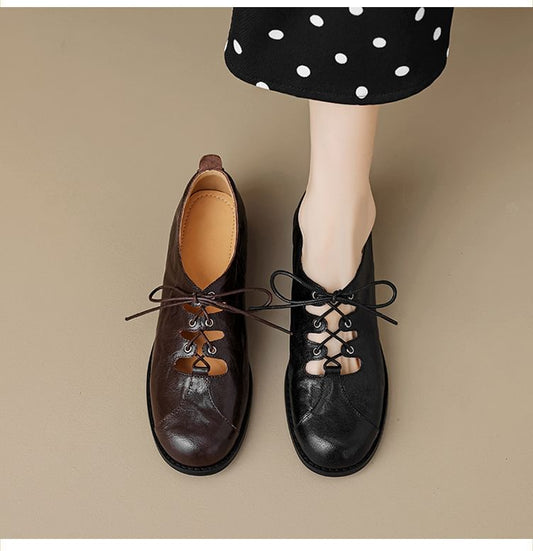 Faux Oxford Cutout Shoes Leather Lace-Up