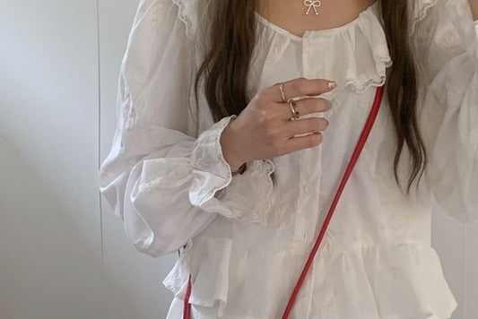 T-Shirt Long-Sleeve Lace Scoop Trim Cropped Plain Neck