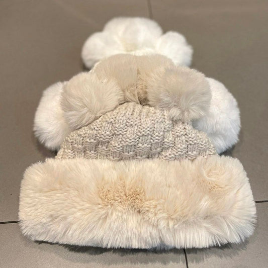 Fluffy Pom Panel Beanie