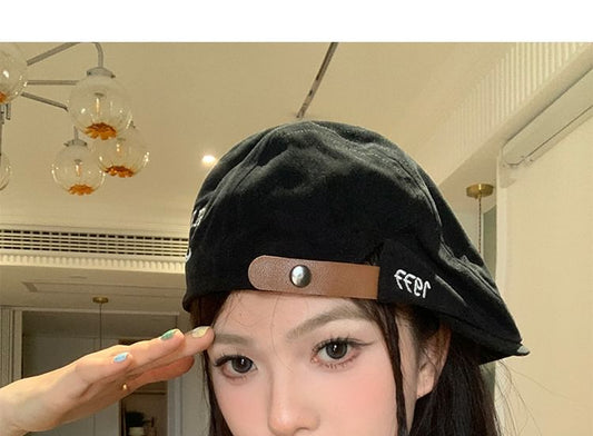 Black Cotton Beret With Brown Strap