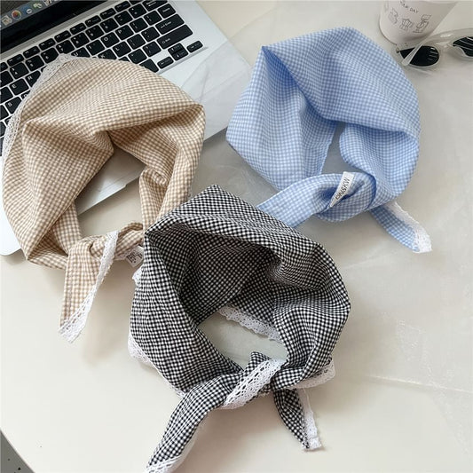 Plaid Lace Trim Headkerchief