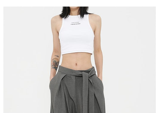 Low Rise Tie-Rise Plain Loose-Fit Wide-Leg Pants
