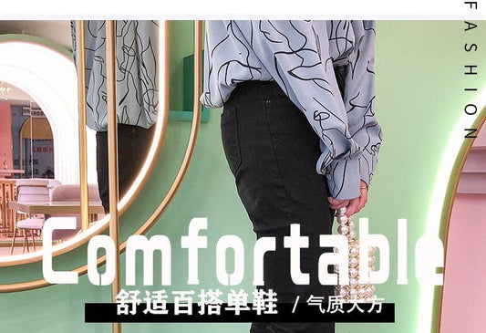 Flare-Sleeve Frog Buttoned Plain Blouse / High Waist Midi A-Line Skirt