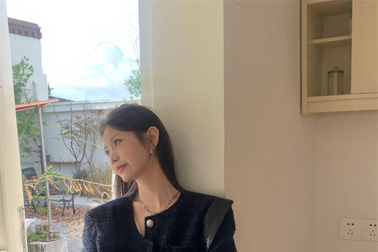 Collared Plain Bow Buttoned Tweed Jacket