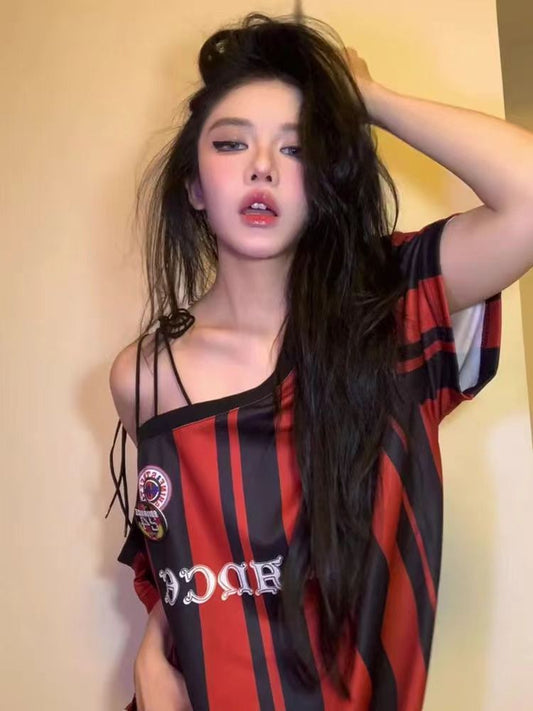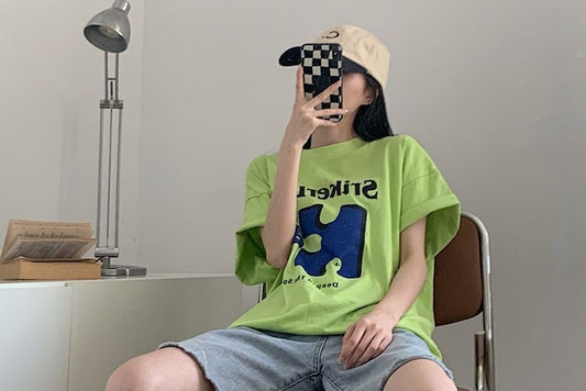 Cold-Shoulder Asymmetrical Lettering Tee