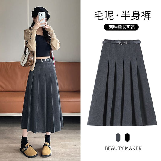 High Rise Plain Midi A-Line Skirt