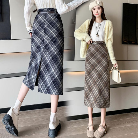 High Waist Plaid Midi A-Line Skirt