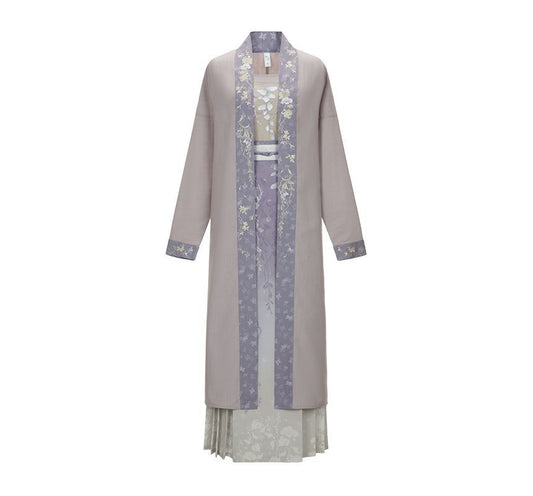 Traditional Chinese Embroidered Camisole Top / High Rise Print Pleated Maxi A-Line Wrap Skirt / Open Front Long Jacket / Set