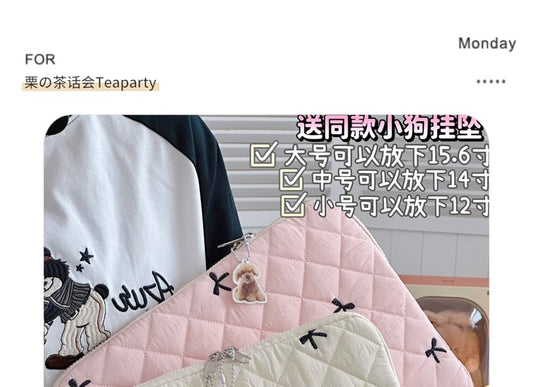 Bow Embroidered Quilted Laptop Sleeve / Bag Charm / Set