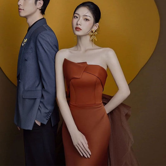Strapless Plain Bow Back Trained Mermaid Evening Gown