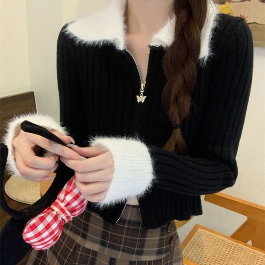 Set : Striped Cutout Cardigan + Striped Knit Tank Top