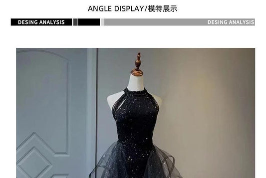 Beaded Crew Panel Neck Ruffle Gown Evening Sleeveless Glitter Mesh Plain A-Line