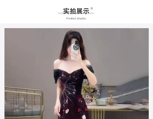 Accent Evening Floral Sequin Gown Mermaid Short-Sleeve Off-Shoulder