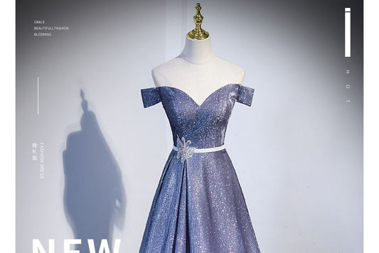 Off-Shoulder Glitter A-Line Evening Gown