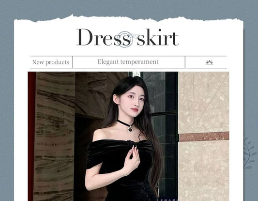 Off Shoulder Velvet A-Line Evening Gown