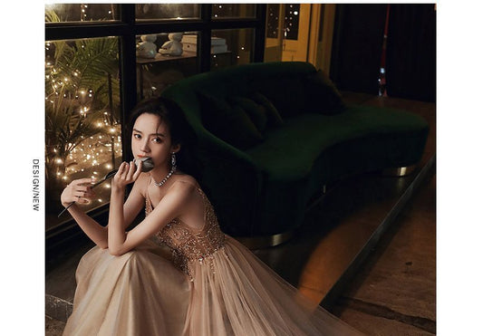 Spaghetti Strap Starry A-Line Evening Gown