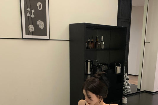 Spaghetti-Strap Plain Side Slit Dress