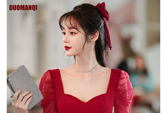 Embroidered A-Line Neck Mock Short-Sleeve / Pearl Dress Flower Faux Gown Evening Cocktail
