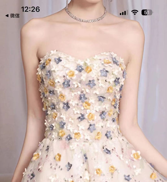 Embroidered Evening Sequin A-Line Flower Gown Puff-Sleeve
