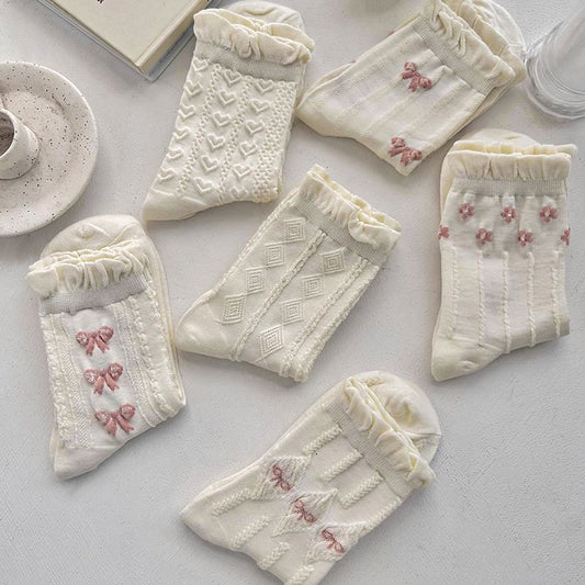 Set of 3 Pairs: Plain Ruffle Trim Socks