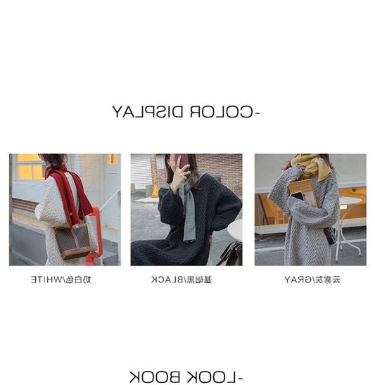 Plain Midi V-Neck Sweater Long-Sleeve Dress
