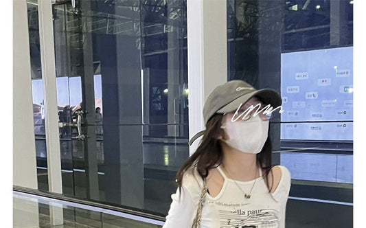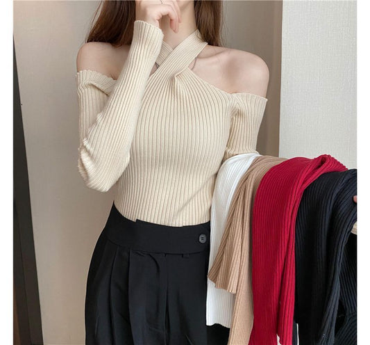 Top Halter Knit Long-Sleeve Plain Cold-Shoulder