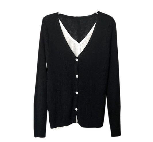 Two Button-Up Two-Piece Top Knit Mock Long-Sleeve V-Neck Tone