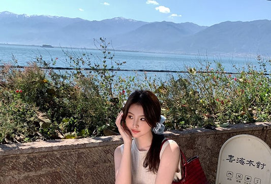 Crew Sleeveless Plain Top Neck Knit Ribbed