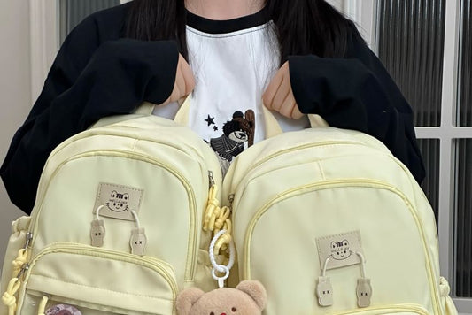 Lettering Print Cartoon Embroidered Nylon Laptop Backpack / Bag Charm / Set