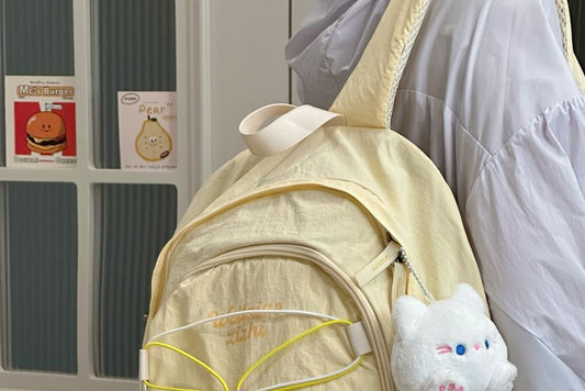 Two Tone Lettering Print Laptop Backpack / Bag Charm / Set