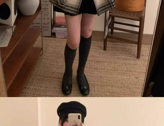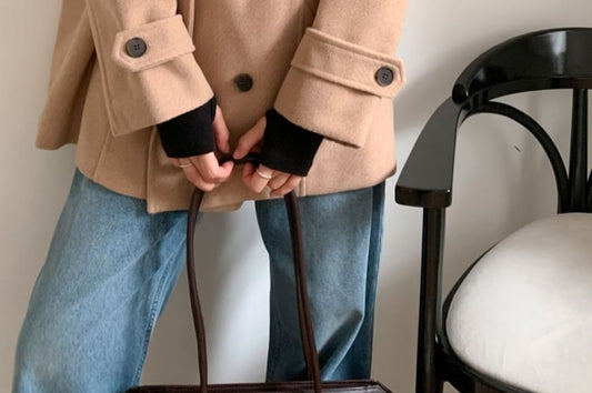Plain Wool Jacket / High Waist Plain Mini Skirt