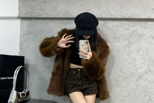 Fluffy Collar Zip Puffer Jacket / Drawstring Waist Plain Wide Leg Parachute Pants