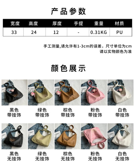 Lettering Embroidered Faux Leather Crossbody Bag / Bag Charm / Set