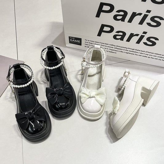 Block Heel Beaded Bow Accent Pumps