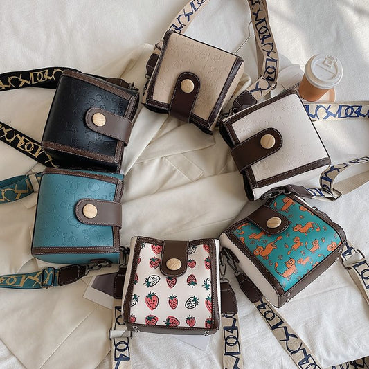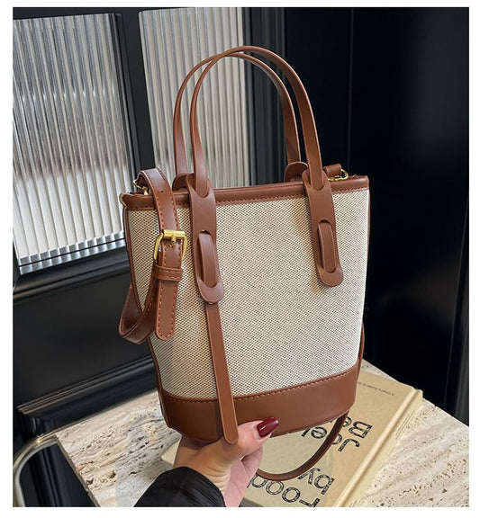 Bucket Leather Two Bag Faux Canvas Panel Tone