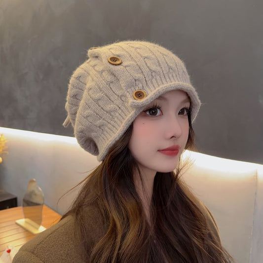 Chinese Characters Applique Knit Beret Hat