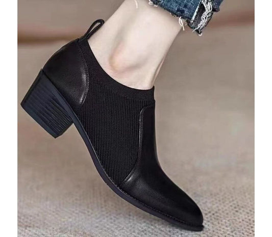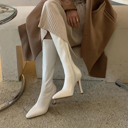 Panel Knee-High Boots Quilted Square-Toe Block Heel