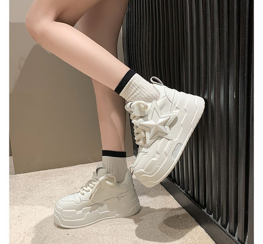 Faux Lace Sneakers Panel Lace-Up Pearl Pattered Platform