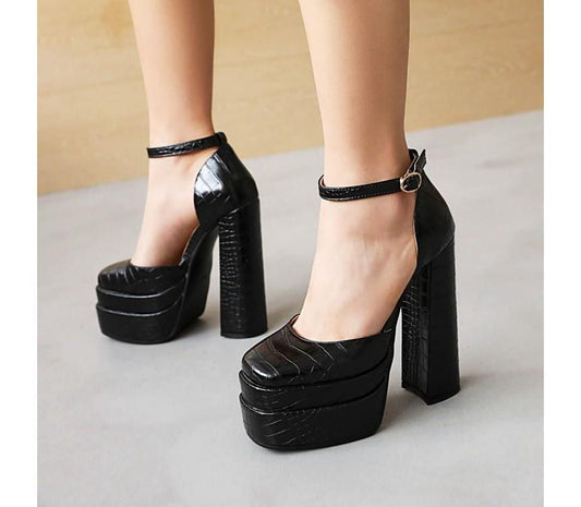 Platform Square Toe D'Orsay Block Heel Mary Jane Pumps