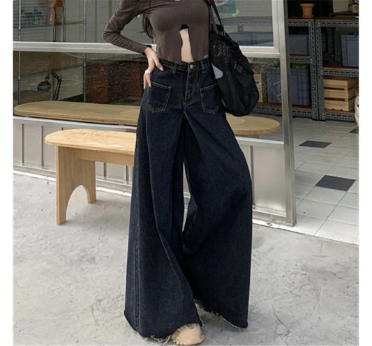 High Waist Washed Fray Hem Maxi Denim Skirt
